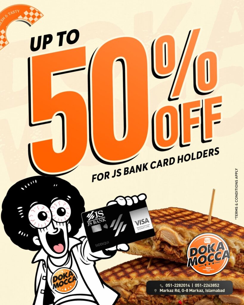 ๐๐ง๐ฃ๐จ๐ฒ ๐ฎ๐ฉ ๐ญ๐จ ๐๐% ๐๐ ๐ , exclusively for JS Bank cardholders. Whether itโs a lunch break or a dinner treat, weโve got your cravings covered!