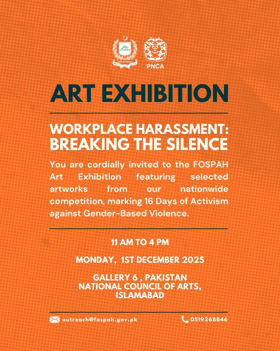 Federal Ombudsperson for Protection Against Harassment @fospah in collaboration with the PNCA is presenting an art exhibition focused on ‘Workplace Harassment: Breaking the Silence’ to showcase the art entries received from students across the nation.
