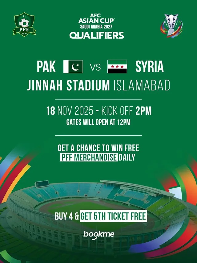 Catch the most sizzling match of Pak Vs Syria on 18th November 2025 at Jinnah Stadium, Islamabad!!