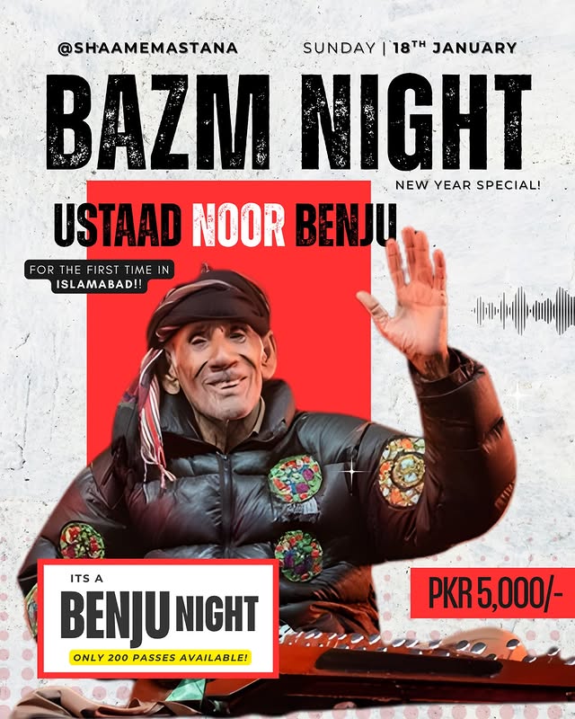 Surprise surprise Islamabad!! the wait is over. Bringing to you Ustaad Noor Bakhsh Benju for the first time in Islamabad. It’s going to be a Benju Night!