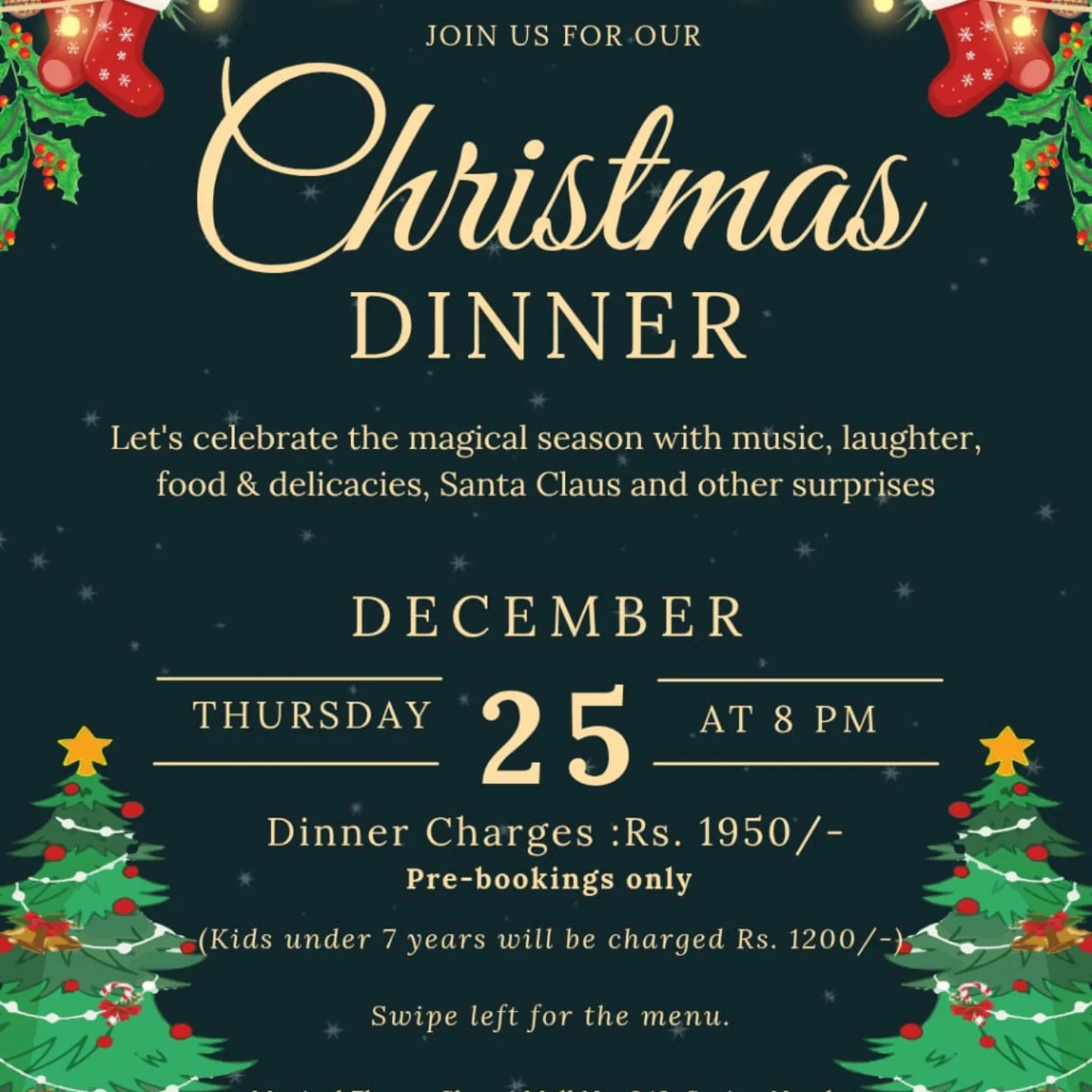 Join us for the Christmas Dinner at Magical Floor – Only pre-bookings will be entertained due to limited slots for the dinner.