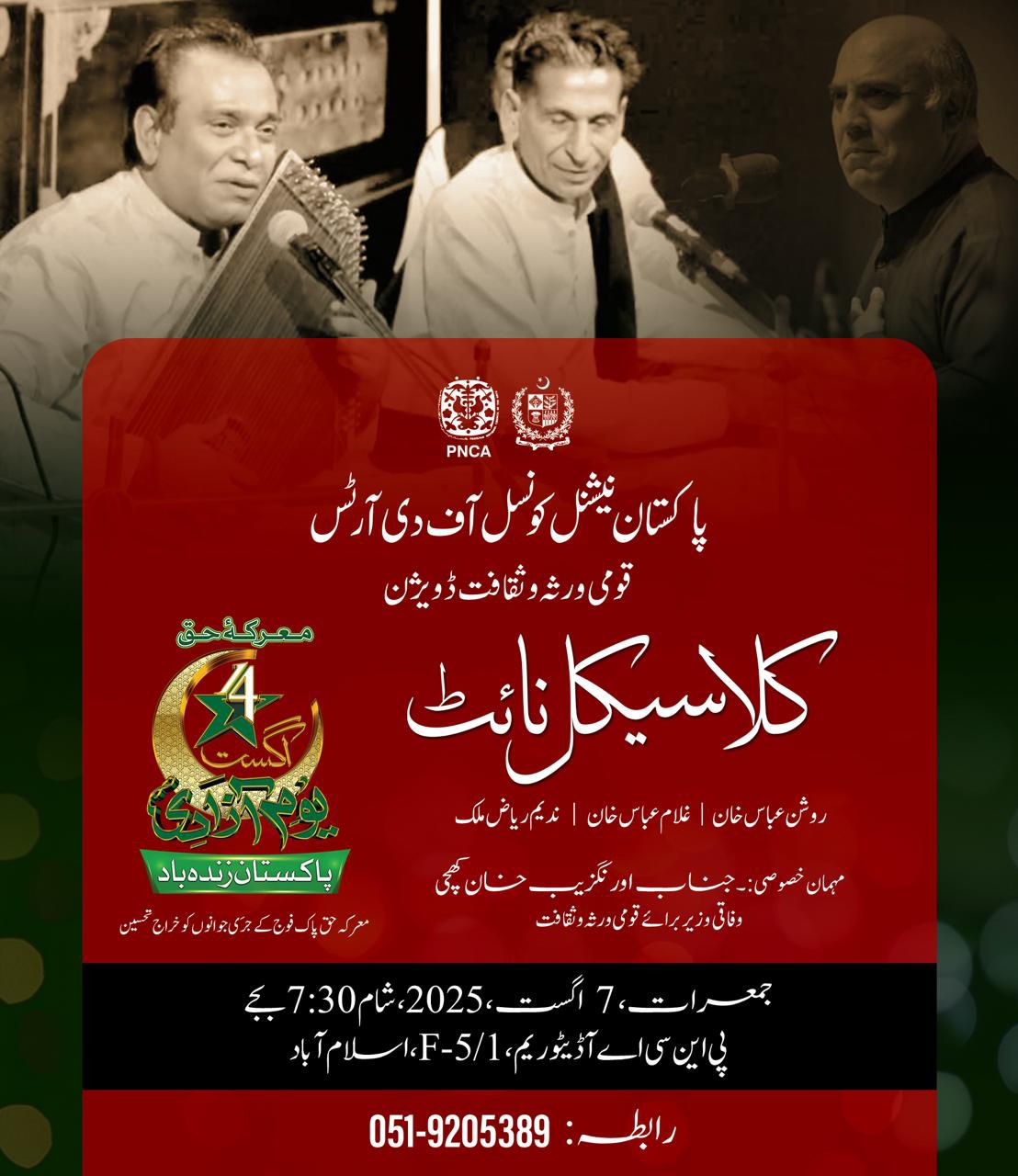 Chief Guest: MNA Aurangzeb Khan Khichi, Federal Minister for National Heritage and Culture.
