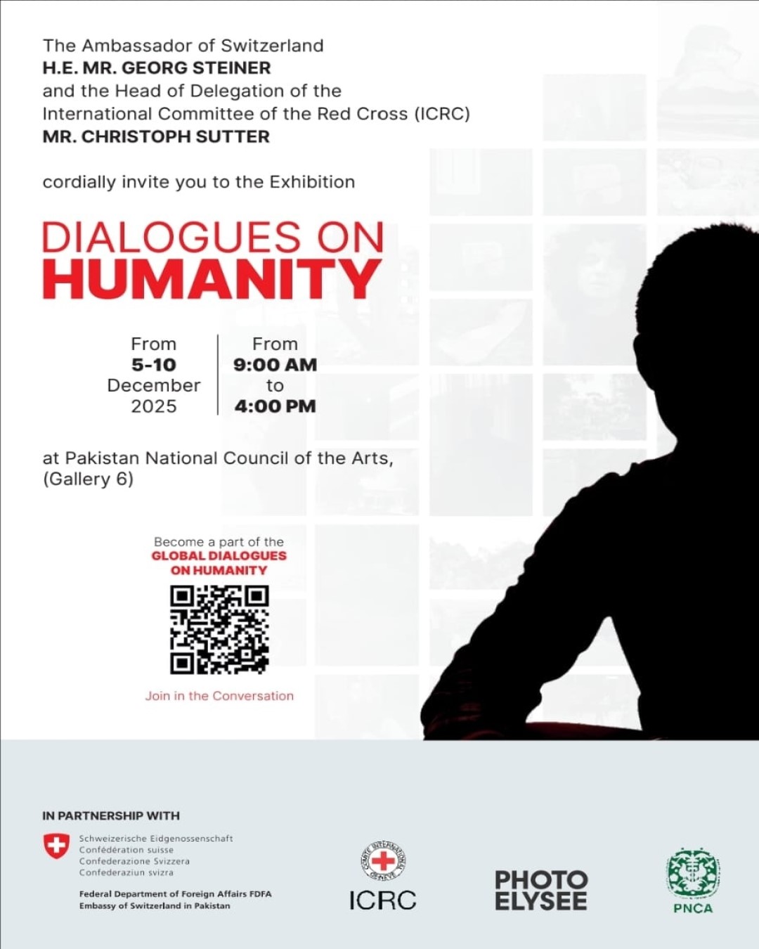Pakistan National Council of the Arts (PNCA), in collaboration with the Embassy of Switzerland in Pakistan and the International Committee of the Red Cross (ICRC) Pakistan, is pleased to present a thought-provoking photo exhibition titled “Dialogues on Humanity.”