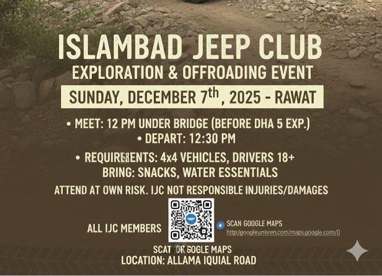 12:00 PM – Meetup under bridge before DHA 5 Entrance