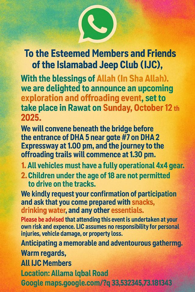 Islamabad Jeep Club event October 2025