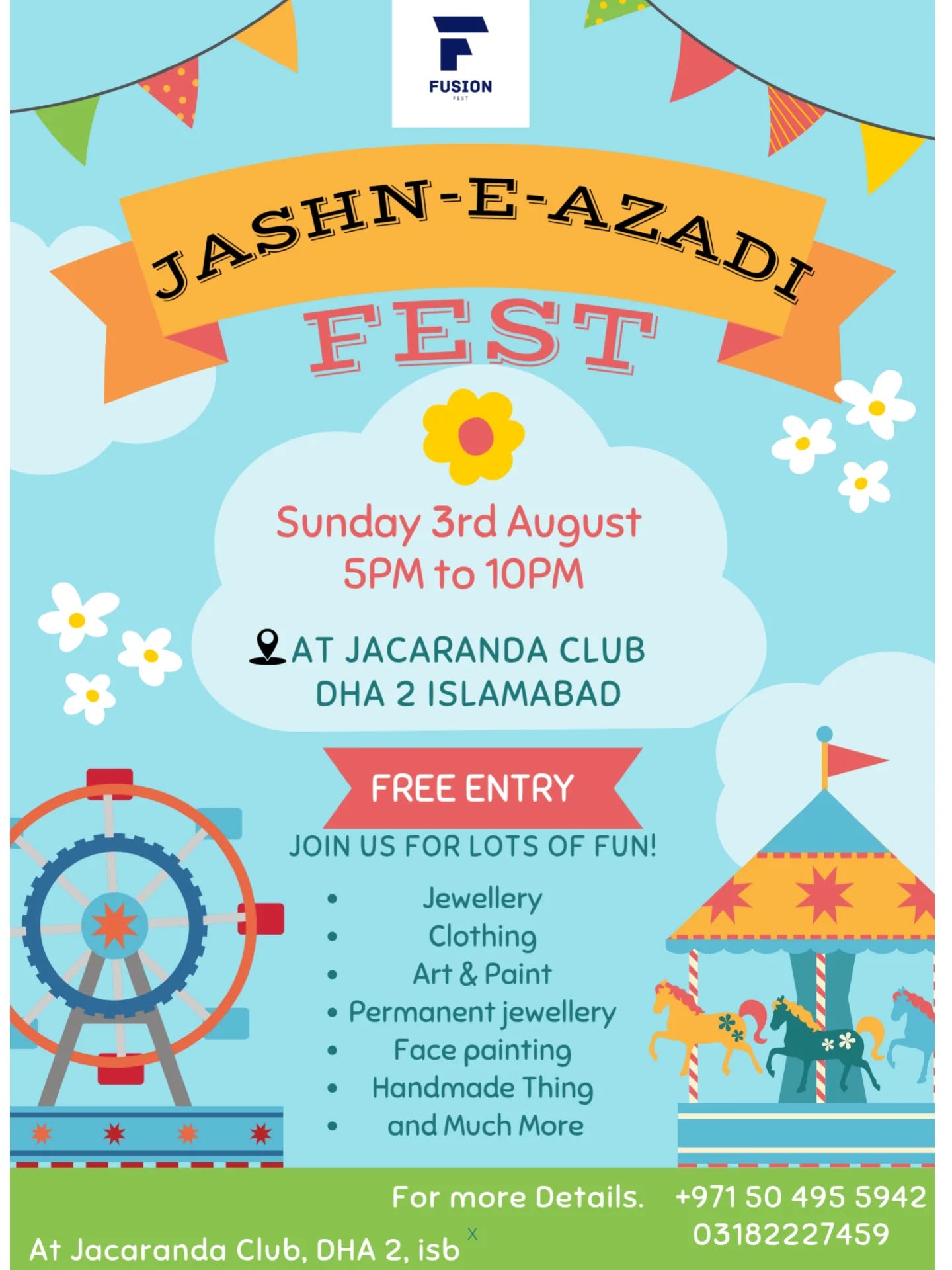 Join us at Jashn-e-Azadi Family Fest on August 3rd at Jacrenda Club, DHA 2, Islamabad!