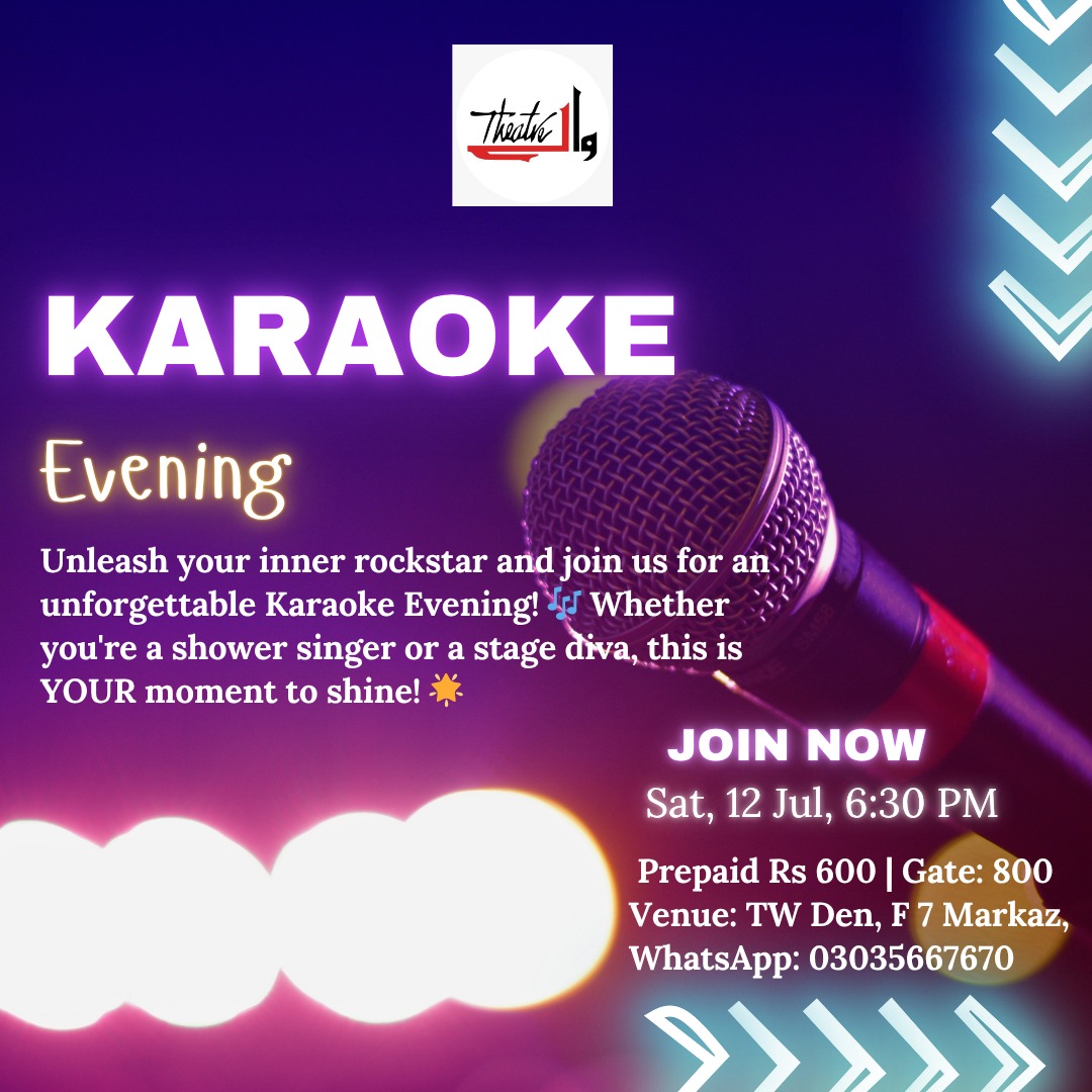 Join us for an unforgettable Karaoke Evening this Saturday, July 12 at 6:30 PM at TW Den, F7 Markaz! Whether you’re a bathroom soloist or a stage queen