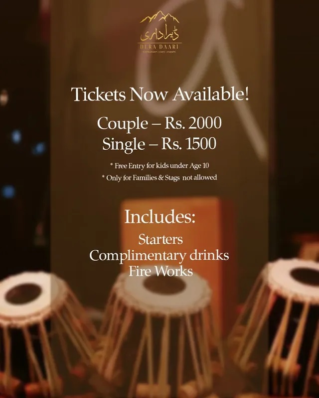 Tickets: Single PKR 1,500/- & Couple PKR 2,000/- (Free entry for kids under age 10)