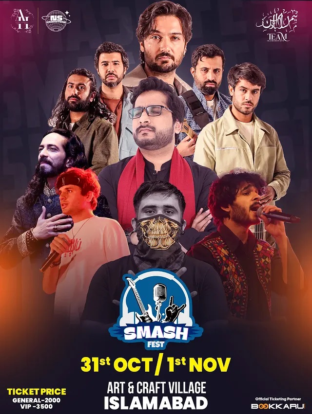 Join us for an unforgettable night of music, art, and entertainment at SMASH FEST on Oct 31 & Nov 1 at Art & Craft Village, Islamabad!