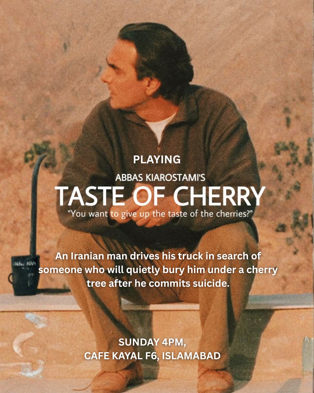 Join us for an intimate screening of Abbas Kiarostami’s Palme d’Or–winning masterpiece, Taste of Cherry a powerful reflection on life, death, and human connection.