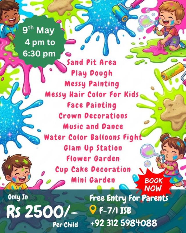 Humne 9th May ko ek aisi duniya tayyar ki hai jahan bache bache ban sakte hain! From water color balloon fights to cupcake decoration, humara Messy Play Date aik aisa experience hai jo aapka bacha kabhi nahi bhoolega.