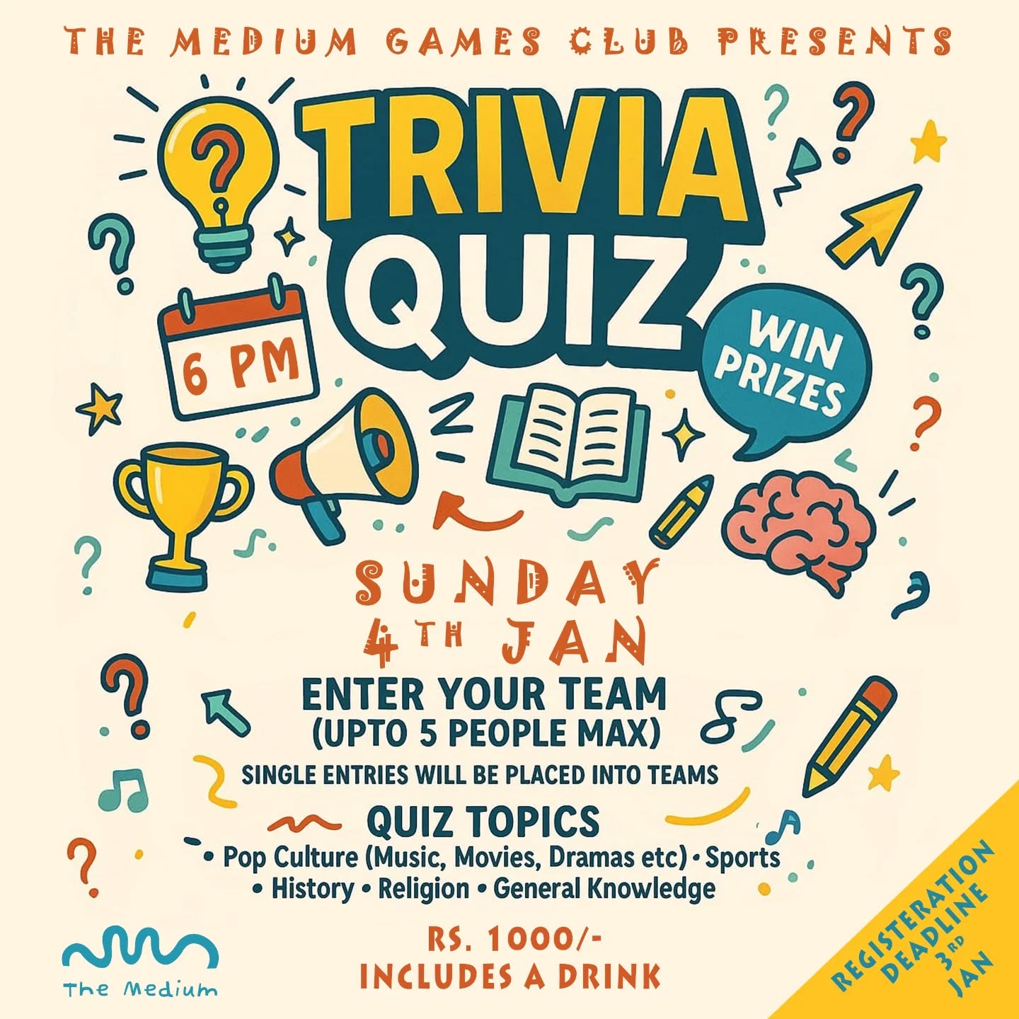Trivia Quiz Night – Bring your friends for some light-hearted fun and a chance to win prizes.