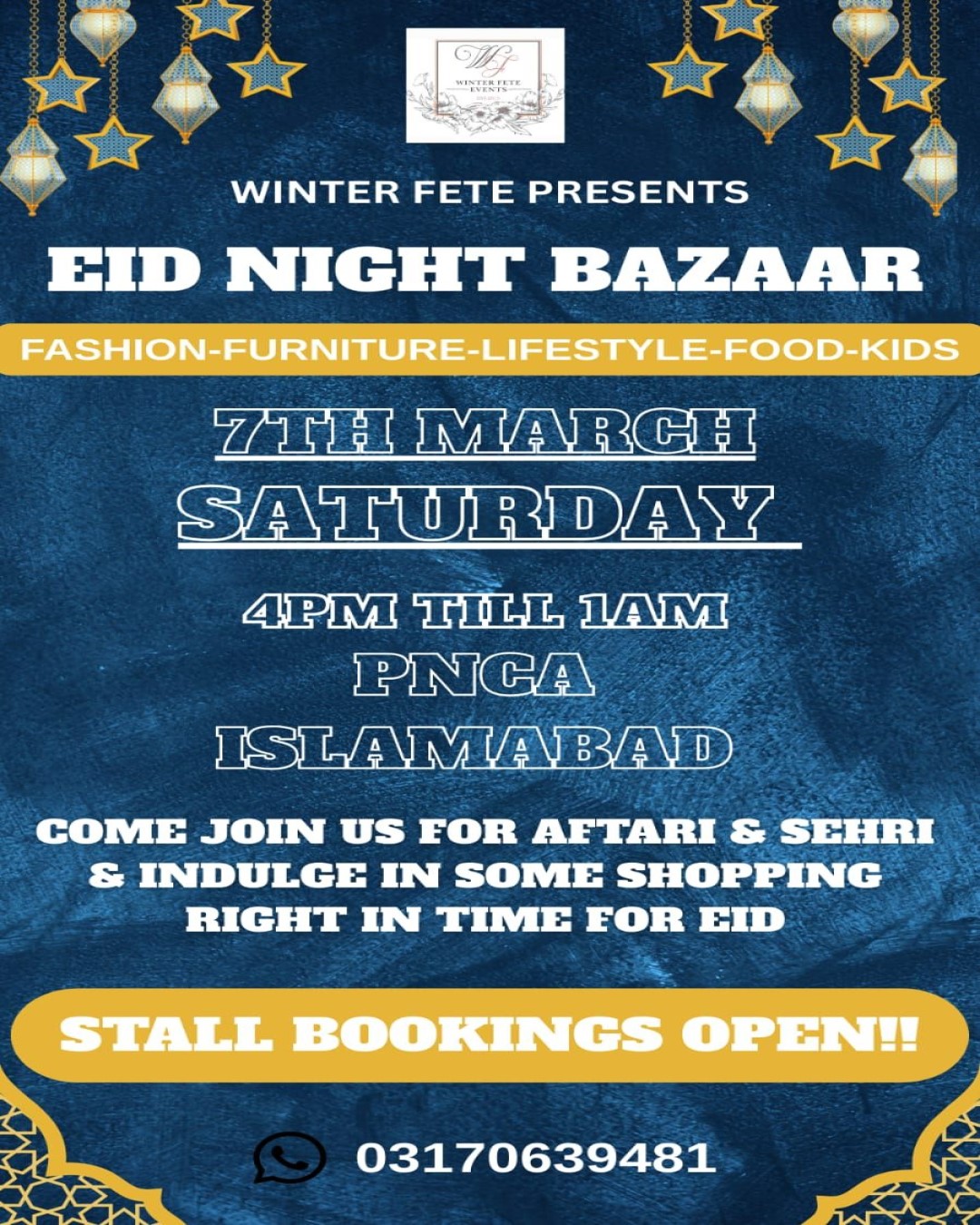 Join us for Winter Fete Eid Night Bazaar in Islamabad. Experience the charm of Arabian traditions during Ramadan, as we bring a lively atmosphere filled with culture, food, entertainment, and shopping to the Capital.