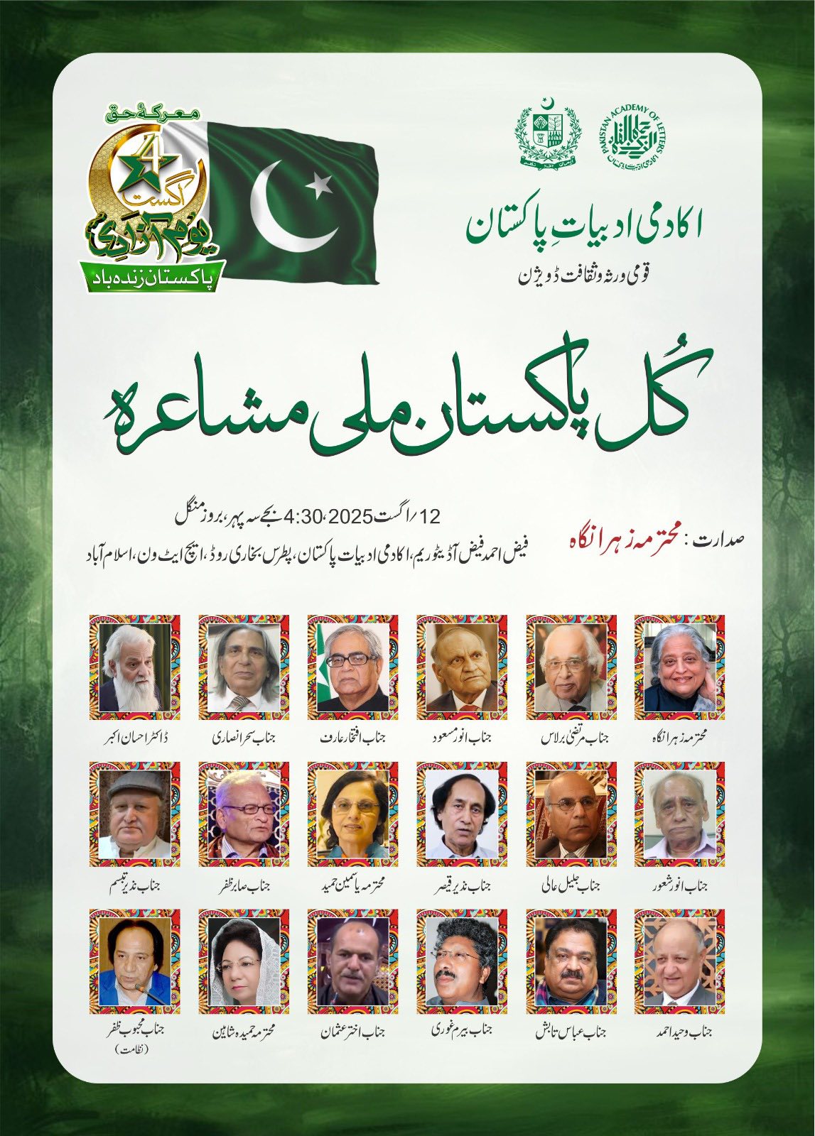The All-Pakistan Milli Mushaira organized by the Pakistan Academy of Letters will be held on Tuesday, August 12, 2025 at […]
