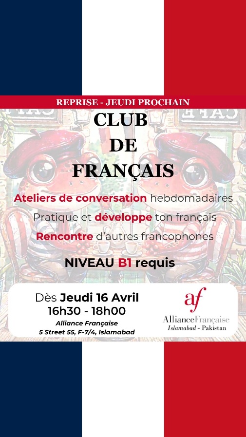 Bonjour ! L'envie de parler français vous démange ? Ça tombe bien ! Nous organisons une rencontre de conversation le jeudi 16 avril 2026 à l'Alliance Française d'Islamabad. On se […]