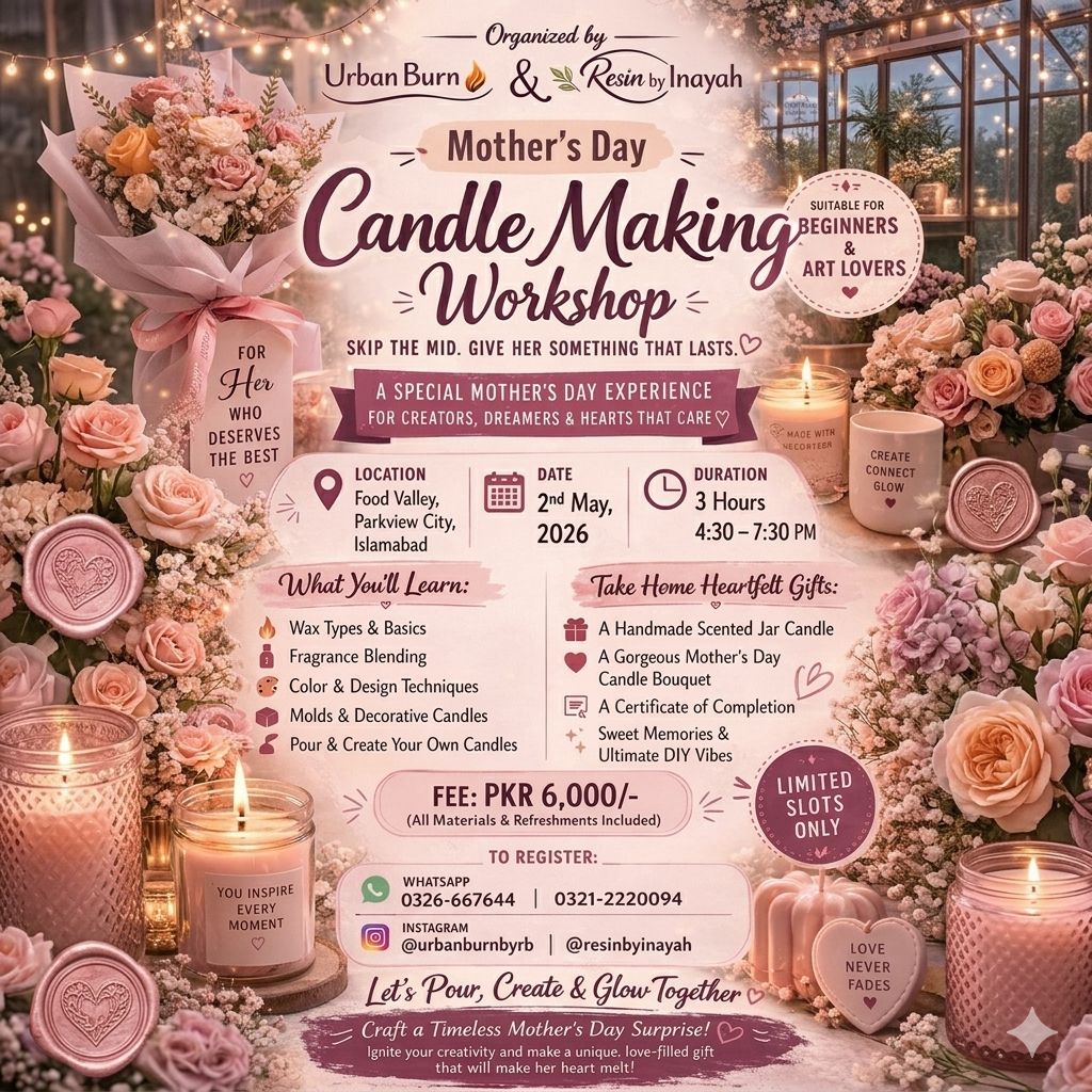 This Mother’s Day, gift her an experience she’ll always remember ✨🕯️ Join us for a dreamy Candle Making Workshop at the beautiful Food Valley, Parkview City Islamabad 🌿💫 Create, connect […]