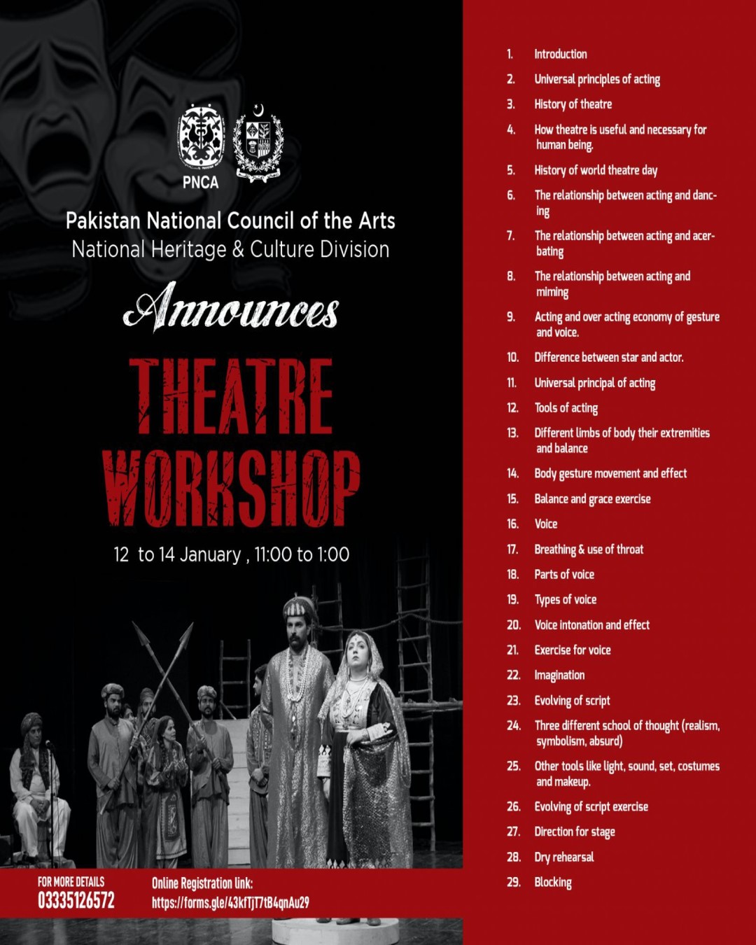 THEATRE WORKSHOP at Pakistan National Council of the Arts. Learn Acting, Voice, Body Movement, Script Work & Stage Direction! Date(s): Monday […]