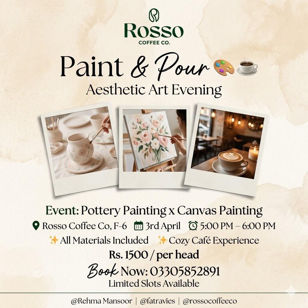 Join our Pottery & Canvas Painting Workshop🎨 Date(s): Friday April 03, 2026 Timing: 05:00 PM - 06:00 PM Location: Rosso […]