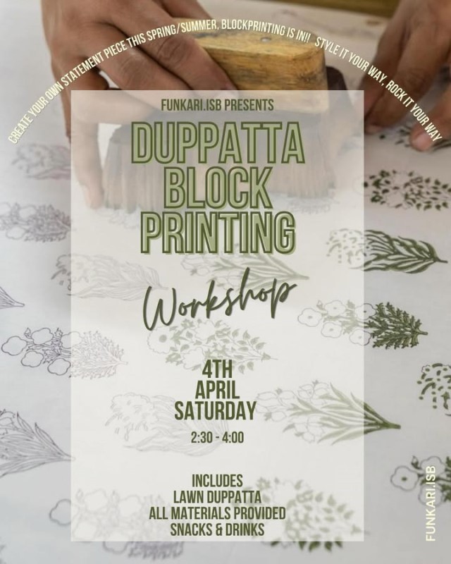 Duppatta Block Printing Workshop Create your own statement dupatta this season ✨ Experiment with beautiful block prints and design something uniquely yours! Includes: Lawn Duppatta All Materials Provided Snacks & […]