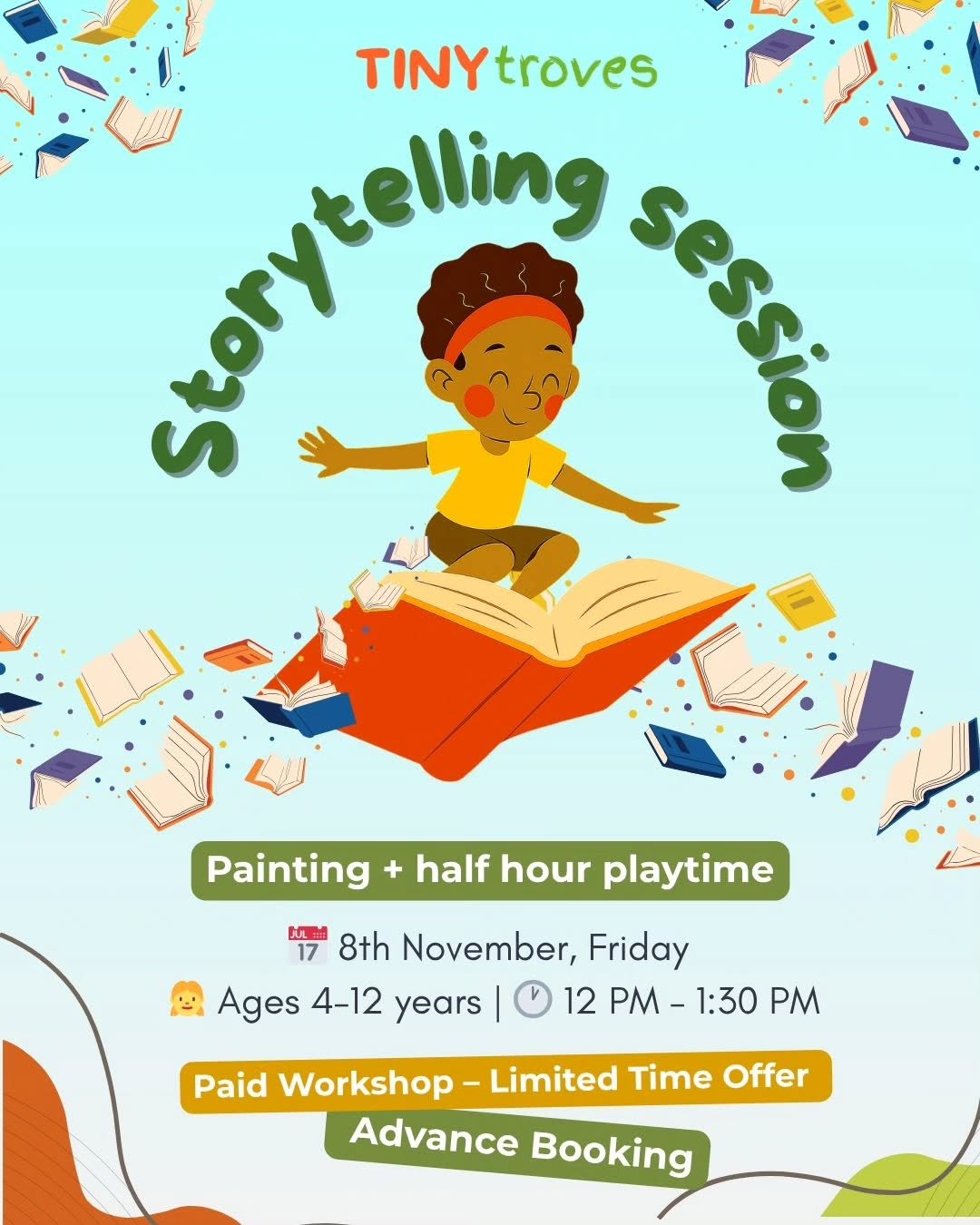Storytelling Session at Tiny Troves! 🌈 Includes half Hour of Playtime 🎨 Storytelling + Painting Activity 🎟️ Paid Workshop […]