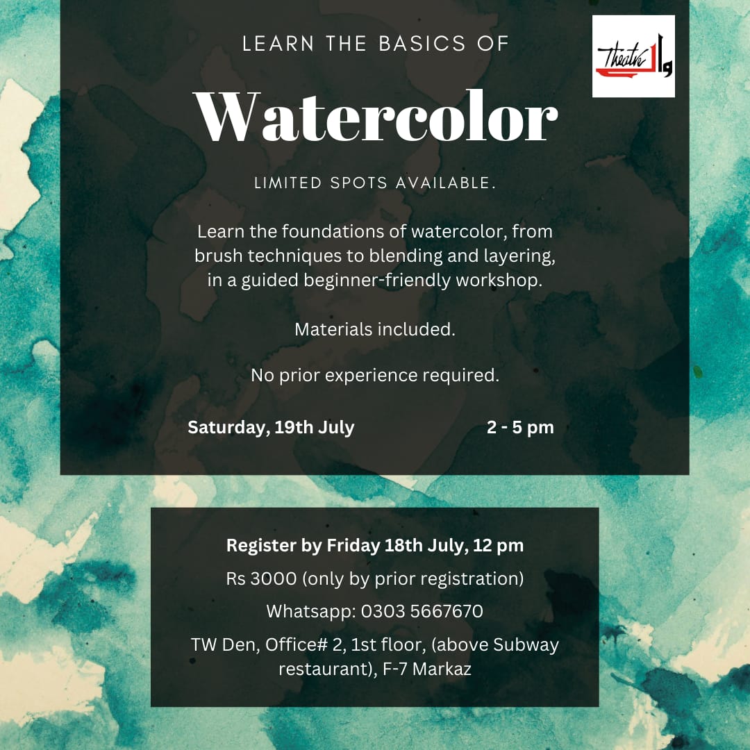 Theatre Wallay TW Den, 1st Floor, Chaudhary Plaza (above Subway), F 7 Markaz, Islamabad, Federal, Pakistan. Unlock Your Inner Artist! . Always wanted to try watercolor painting but didn’t know where to start? Join us […]