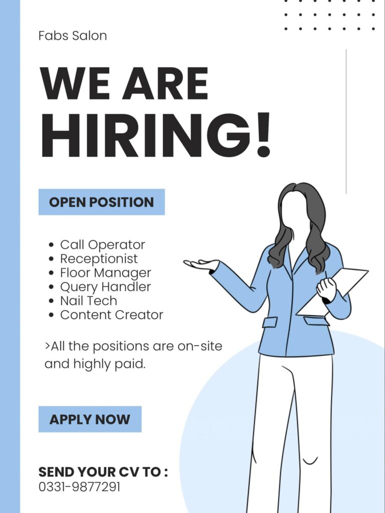 Positions @ Fabs SalonBy ADMIN / April 7, 2026 Spread the love FEMALES ONLY Required for both Branches: E-11 & I-8 Views: 1 Spread the love