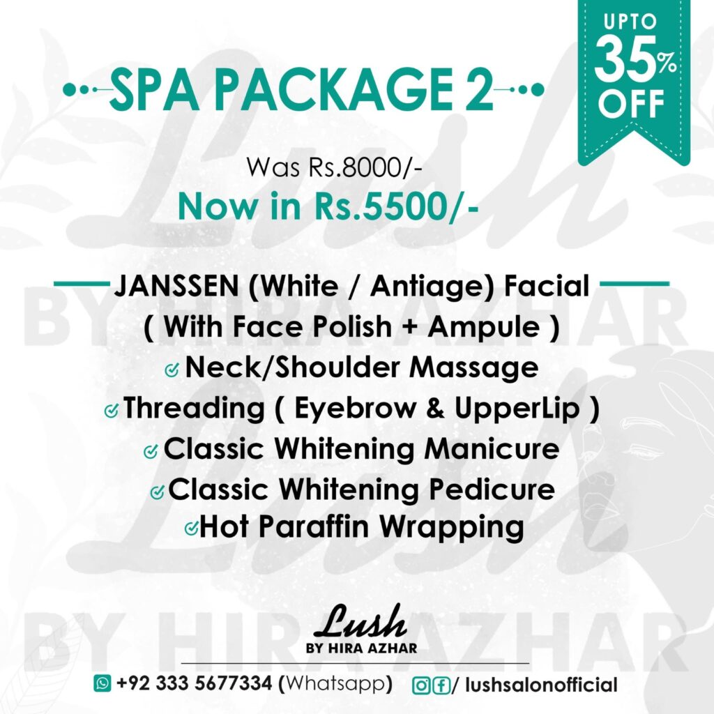 Spa Package 2By ADMIN / April 11, 2026 Spread the love Deals Available at All Branches of Lush. Satellite Town Commercial Market 051-4850544 Bahria Civic Center 051-5731690 Main PWD Road 051-5421085 Views: 2 Spread the love